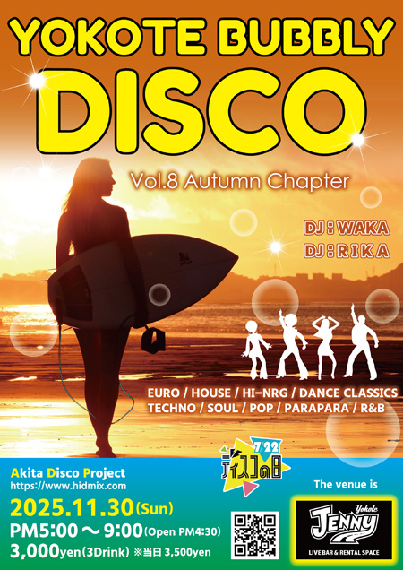 バブルと相まって日本中が輝いていた80年代。その中でも特にディスコは当時の若者を巻き込んだブームとなり、最高のトレンディさを誇りました。本当に楽しかったあの時代のディスコを秋田の県南を中心に復活させ、続けて行くためにADP(Akita Disco Project)を設立いたしました。