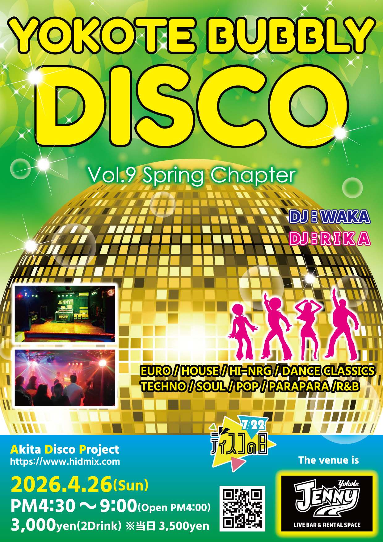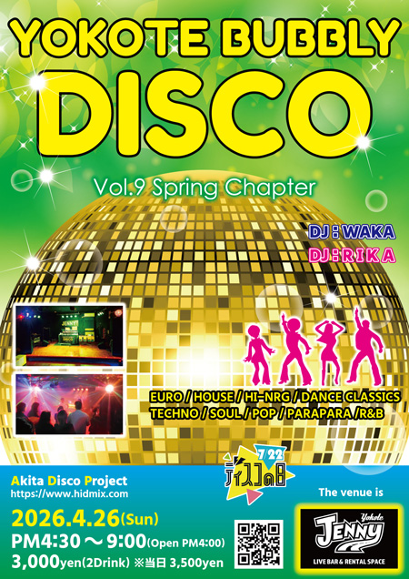 バブルと相まって日本中が輝いていた80年代。その中でも特にディスコは当時の若者を巻き込んだブームとなり、最高のトレンディさを誇りました。本当に楽しかったあの時代のディスコを秋田の県南を中心に復活させ、続けて行くためにADP(Akita Disco Project)を設立いたしました。